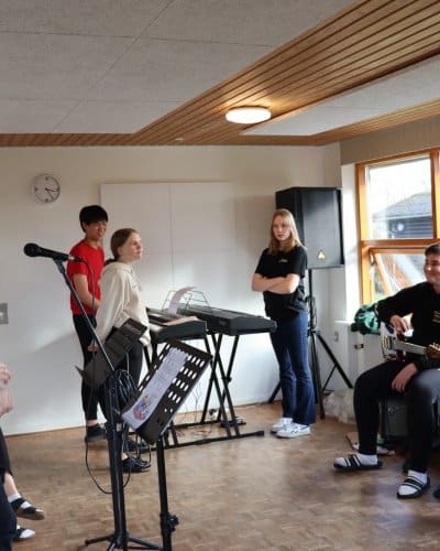 På vores efterskole har vi tradition for morgensang hver mandag og fredag. Her samles eleverne for at starte dagen med musik og fællessang. Og her har vores musikvalgfagselever selvfølgelig også mulighed for at bidrage til morgensangen og lade de øvrige elever få glæden af at opleve deres musikalske talent.